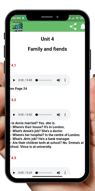 पाठ के सभी ऑडियो सुनना और टेप स्क्रिप्ट के साथ ट्रैकिंग करना। आप अलग-अलग ऑडियो पार्ट में सेक्शन दर सेक्शन को पाठ दर पाठ आसानी से समझ सकते हैं!