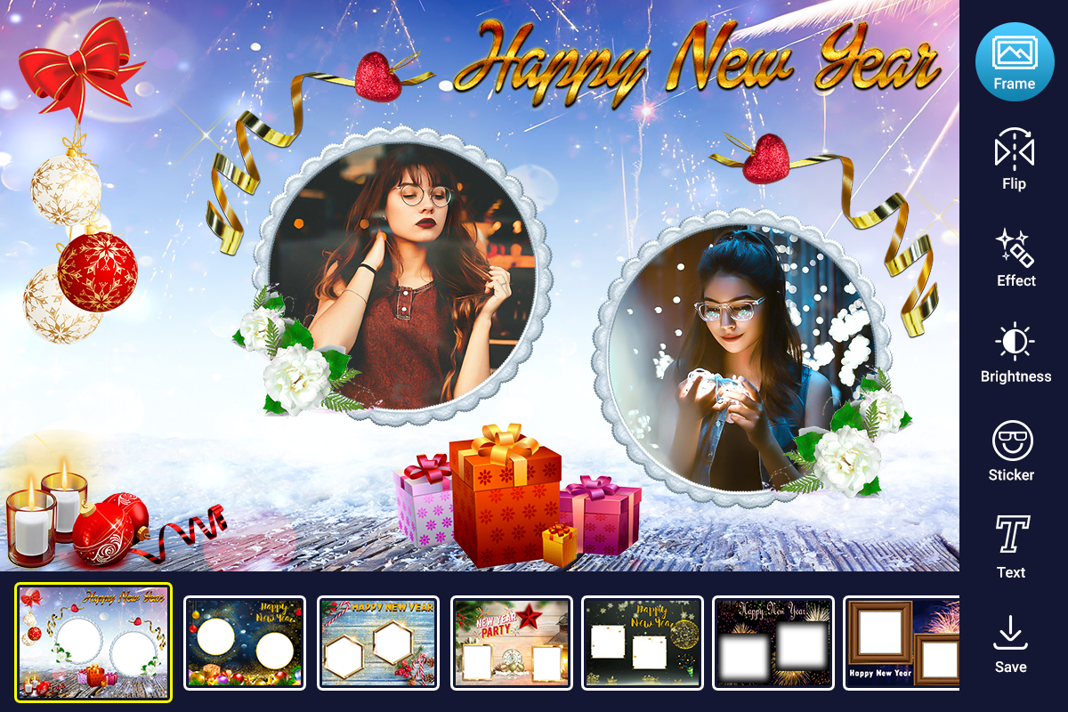 Create the best pictures with the photo in New Year Photo Frame Dual frames editor today!