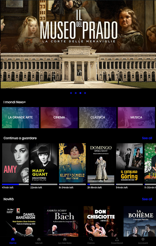 नए नेक्सो+ ऐप के साथ, नेक्सो स्टूडियोज़ की दुनिया में प्रवेश करें, जो एक इतालवी प्रोडक्शन और वितरण कंपनी है जो वर्षों से सिनेमा और स्ट्रीमिंग में कला, संगीत और संस्कृति का सर्वश्रेष्ठ प्रदर्शन ला रही है।