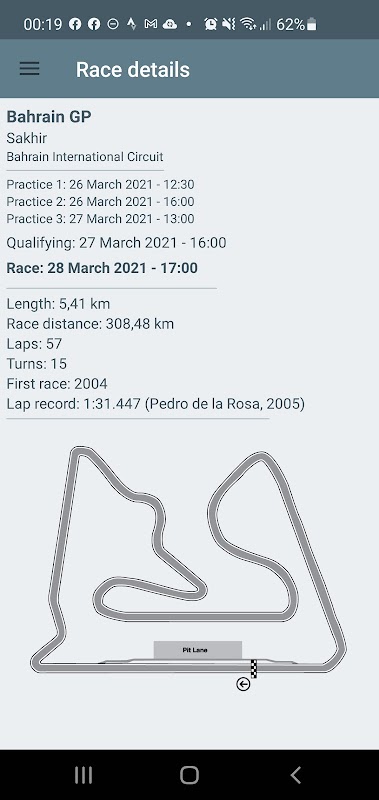 यदि आप मुख्य एप्लिकेशन शुरू करते हैं तो यह सीज़न शेड्यूल को सूचीबद्ध करता है। आप उन्हें चुन सकते हैं और दौड़ और मानचित्र विवरण की जांच कर सकते हैं।
