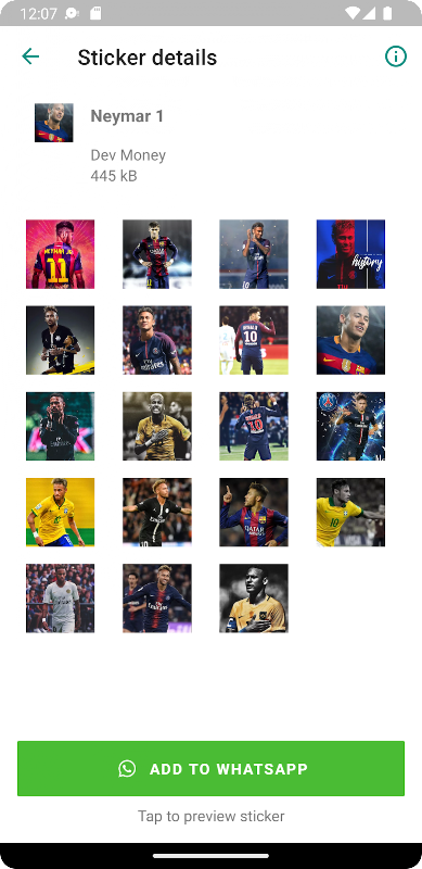 Dois pacotes de figurinhas do neymar para você enviar para os amigos do futebol no whatsapp!