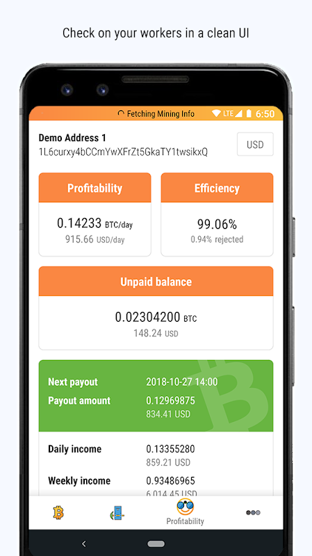 - त्वरित टाइल में बस एक बटन टैप करके जल्दी से अपने खनन स्थिति पर एक नज़र प्राप्त करें
