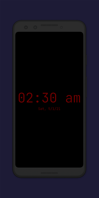 इस घड़ी ऐप का उपयोग डिजिटल बेडसाइड घड़ी / रात की घड़ी के रूप में किया जा सकता है और यह रात में अपना बिस्तर छोड़ते समय आपकी सुविधा के लिए एक टॉर्च भी प्रदान करता है।
