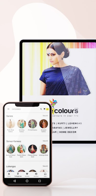 नवीनतम साड़ी, लहंगा, सूट, गाउन, कुर्तियां नाइनकोलर्स ऐप पर उपलब्ध हैं।