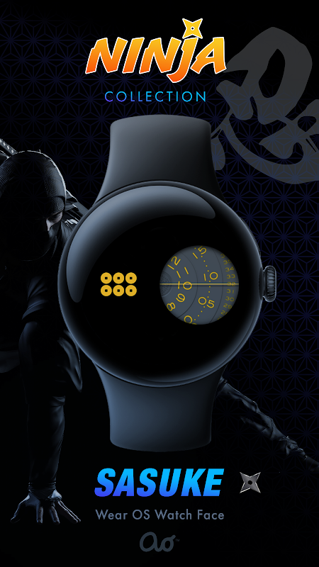 स्क्रीन के बायीं ओर टैप करने पर नौ हस्त संकेतों के माध्यम से चक्र चलेगा। निंजा उत्साही लोगों के लिए इस वॉच फेस के साथ कभी भी, कहीं भी वास्तविक निंजा कौशल देखें।