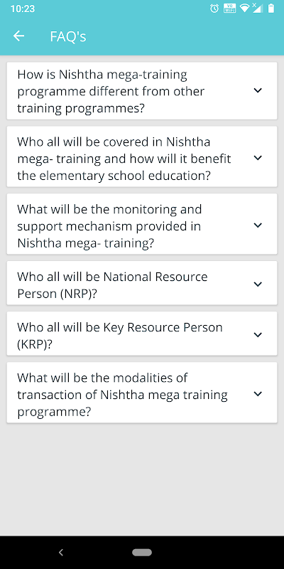NISHTHA "एकीकृत शिक्षक प्रशिक्षण के माध्यम से स्कूल शिक्षा की गुणवत्ता में सुधार" के लिए एक क्षमता निर्माण कार्यक्रम है। इसका उद्देश्य प्रारंभिक स्तर पर सभी शिक्षकों और स्कूल प्रिंसिपलों के बीच दक्षता का निर्माण करना है। पदाधिकारियों (राज्य, जिला, ब्लॉक, क्लस्टर स्तर पर) को सीखने के परिणामों, स्कूल आधारित मूल्यांकन, शिक्षार्थी - केंद्रित शिक्षाशास्त्र, शिक्षा में नई पहल, कई शिक्षाओं के माध्यम से बच्चों की विविध आवश्यकताओं को संबोधित करने आदि पर एकीकृत तरीके से प्रशिक्षित किया जाएगा। यह राष्ट्रीय और राज्य स्तर पर राष्ट्रीय संसाधन समूहों (NRGs) और राज्य संसाधन समूहों (SRG) का गठन करके आयोजित किया जाएगा जो बाद में 42 लाख शिक्षकों को प्रशिक्षित करेंगे। प्रशिक्षण, निगरानी और सहायता तंत्र की डिलीवरी के लिए एक मजबूत पोर्टल / प्रबंधन सूचना प्रणाली (एमआईएस) भी इस क्षमता निर्माण पहल के साथ संचार किया जाएगा।
