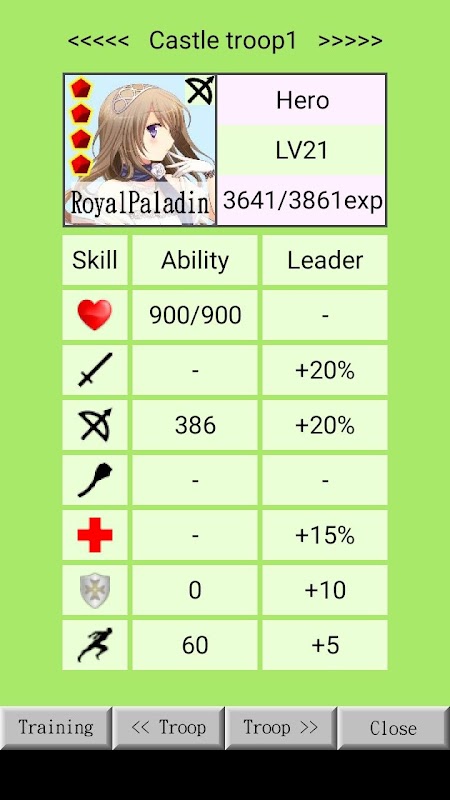 हीरो प्रमोशन टेबल (उदाहरण के लिए नाइट लें):