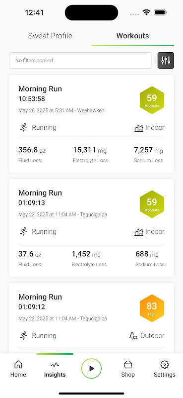 - द्रव हानि दर, इलेक्ट्रोलाइट हानि दर और पसीना संरचना मेट्रिक्स सहित अपने पसीना प्रोफ़ाइल पर अंतर्दृष्टि के माध्यम से कसरत के बाद पसीना खुफिया प्रदान करें