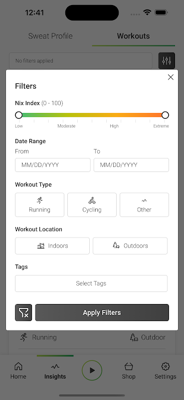 - अपने पसीने के डेटा और अपने प्रशिक्षण वातावरण को निक्स इंडेक्स के साथ सहसंबंधित करें - छह पर्यावरणीय कारकों का एक समग्र सूचकांक: तापमान, आर्द्रता, ओस बिंदु, ऊंचाई, हवा की गति और सौर भार