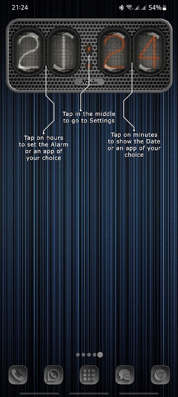 निक्सी ट्यूब क्लॉक विजेट प्रसिद्ध IN-12 निक्सी ट्यूब पर आधारित है।