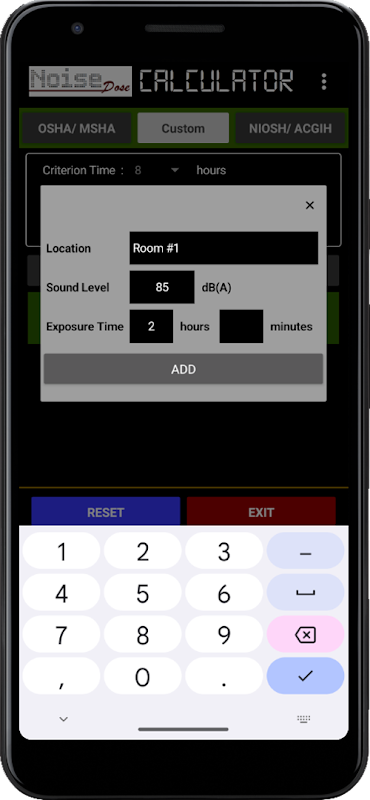 यह एप्लिकेशन 8-घंटे के कार्यदिवस में समतुल्य शोर जोखिम की गणना करने के लिए उपयोग में आसान प्लेटफ़ॉर्म प्रदान करता है, जो अनुमेय एक्सपोज़र सीमाओं का अनुपालन सुनिश्चित करता है। हमारा शोर खुराक कैलकुलेटर ऐप किसी भी कार्यस्थल के लिए एक आवश्यक उपकरण है जो कर्मचारी स्वास्थ्य और सुरक्षा को महत्व देता है। यह एप्लिकेशन OSHA/MSHA, NIOSH/ACGIH, या विशिष्ट शोर एक्सपोज़र मानकों के अनुसार शोर की खुराक की गणना करता है।