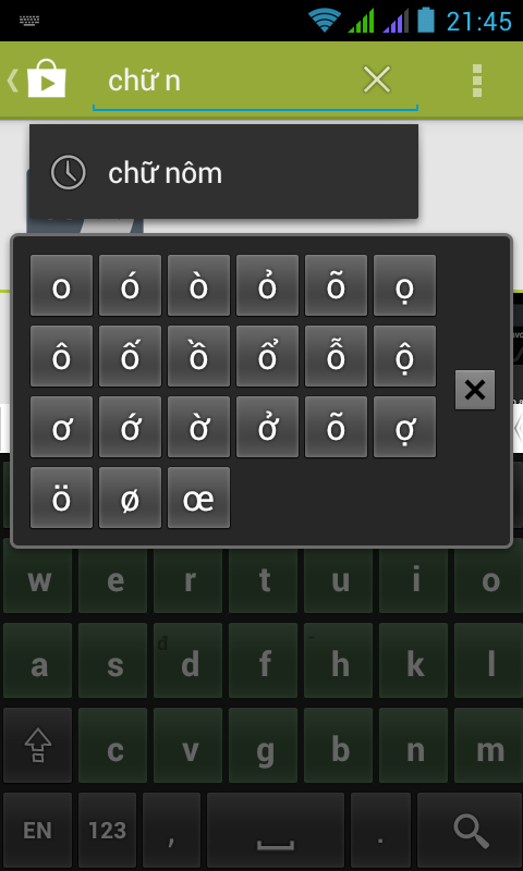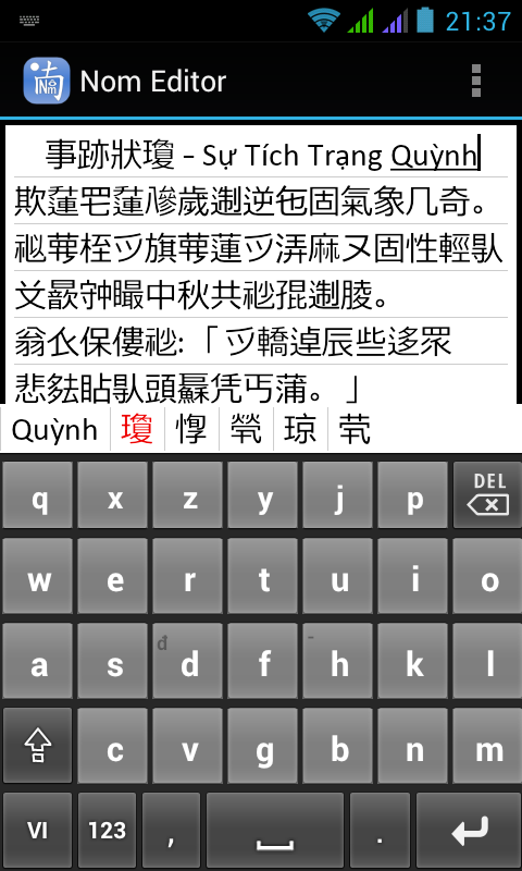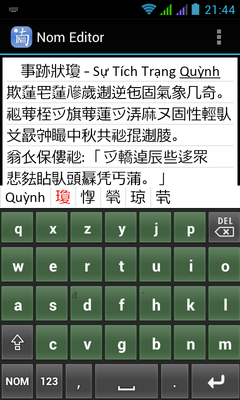 * Nom Keyboard enables you to type Vietnamese characters (Chữ Nôm) on your mobile phone.