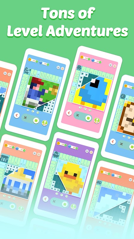 💡💡नॉनोग्राम को कलर पज़ल, जापानी पज़ल, पिक्चर क्रॉस लॉजिक, ग्रिडलर्स, पिक्रॉस लॉजिक पज़ल, पिक्सेल पज़ल और पिक्चर गेम के रूप में भी जाना जाता है। यह एक ऐसा गेम है जो आपके तर्क और कल्पना का बहुत अभ्यास करता है, यही वजह है कि यह दुनिया भर के खिलाड़ियों द्वारा इतना प्रिय है।💡💡