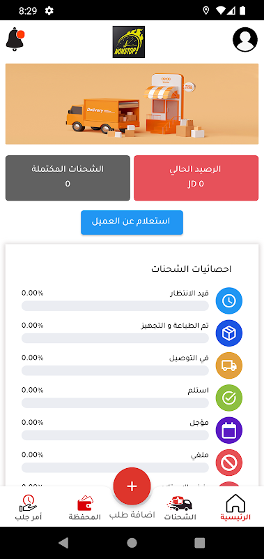 تطبيق خاص للعميل لمتابعة الشحنات و المعلومات المالية و إضافة الشحنات بكل سهولة و يسر