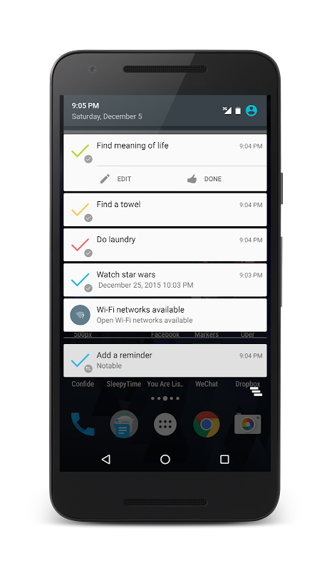 उल्लेखनीय है कि आप अपने सूचना पट्टी में अनुस्मारक और नोट्स स्थापित करने के लिए अनुमति देता है। अपने आप को ऐसा करने के लिए कुछ की याद दिलाने की आवश्यकता है? बस app, एक संक्षिप्त संदेश में टाइप खुला, और एक नोट बनाने के लिए! सभी 5 सेकंड के भीतर से किया है, और आप अभी अपने दिन के साथ वापस जा सकते हैं।