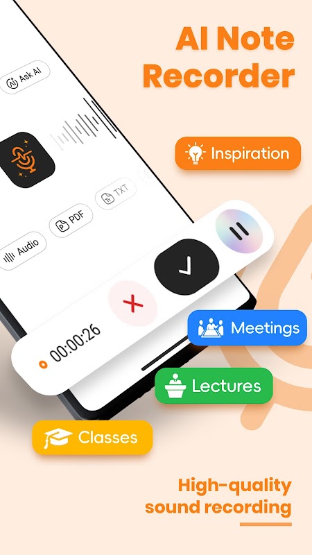 -निरंतर बैकग्राउंड रिकॉर्डिंग: ऐप्स बदलने या स्क्रीन लॉक करने पर भी स्थिर रहती है, जिससे आप वर्तमान बातचीत पर ध्यान केंद्रित कर सकते हैं।