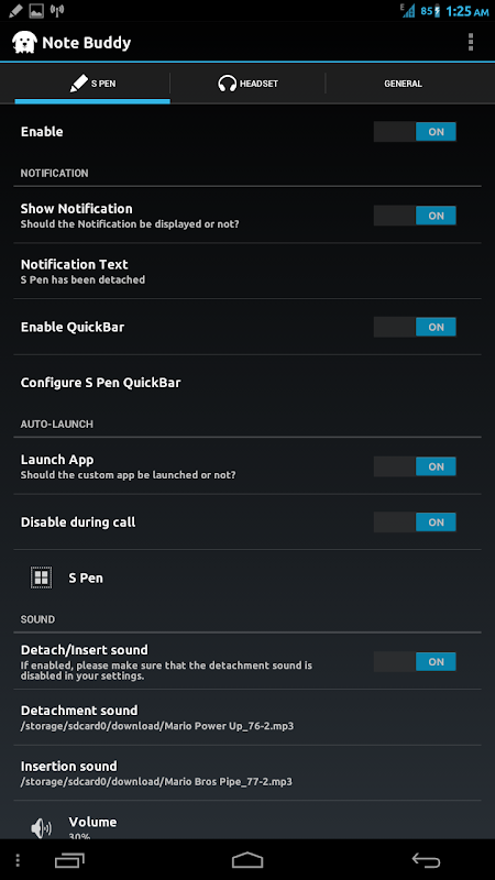 -Shows a Notification with custom text when the S Pen is detached/Headset is plugged in. (can be disabled)