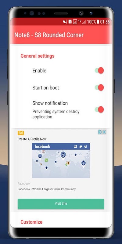 This Note 8 - S8 Rounded Corners Screen application will make your screen with rounded corners like S8.
