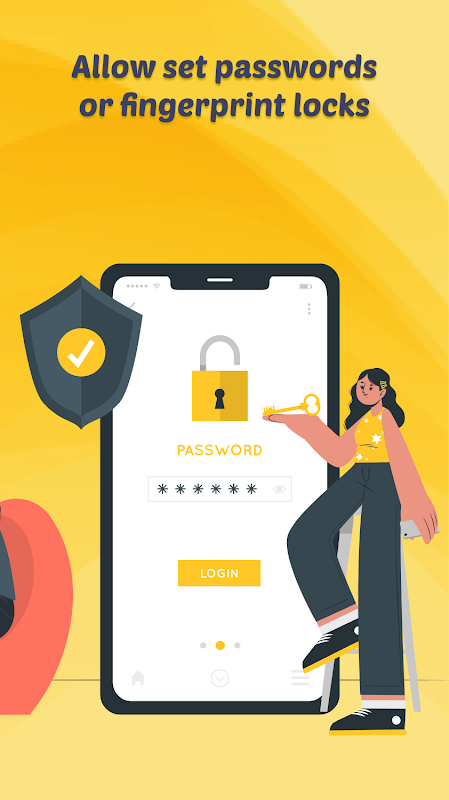 आयोजक पासवर्ड और फिंगरप्रिंट लॉक के साथ नोटबुक ऐप के सुरक्षित लॉक फीचर के साथ महत्वपूर्ण नोट्स, टू-डू लिस्ट, प्लान को पूरी तरह से सुरक्षित कर सकते हैं। यह लॉग्स और आर्काइव्स में डेटा के प्रबंधन और सुरक्षा के लिए एक बेहतरीन सुविधा है।