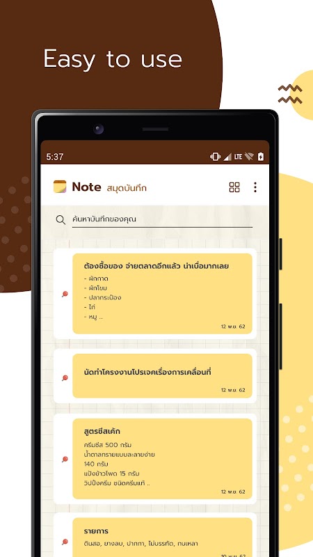 नोट्स (रीसायकल नोट) आपके शेड्यूल और नोट्स को प्रबंधित करने के लिए एक अच्छा सहायक है। जब आप नोट्स, मेमो और संदेश लिखते हैं तो यह आपको त्वरित संपादन का अनुभव देता है।