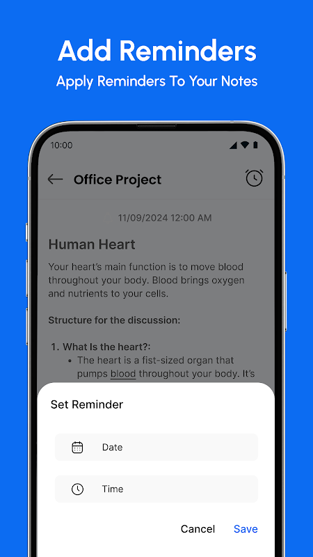 Add reminders to your notes and get notified right on time—never miss a task again.