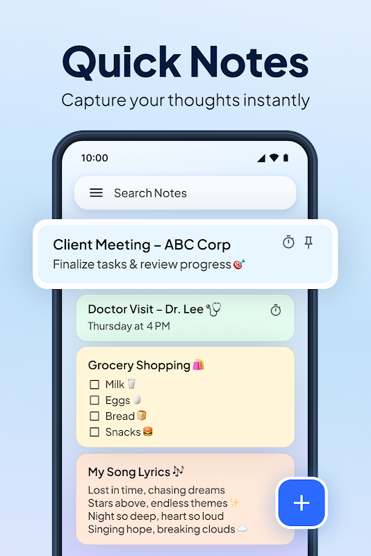 चाहे आप अपने दिन को व्यवस्थित कर रहे हों या बाद के लिए विचारों को सहेज रहे हों, नोटबुक ऐप आपको कहीं भी, कभी भी केंद्रित और नियंत्रण में रहने में मदद करता है।