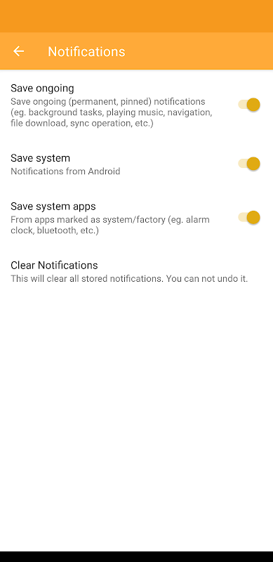The archive remembers notifications, grouped by application (including system applications). You can filter / ignore applications (longer press).