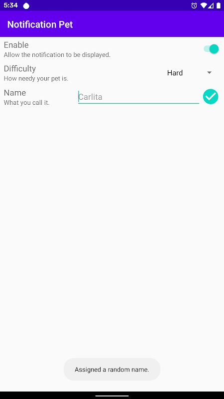 All the data needed for the status of the pet is stored quietly in the notification itself and with broadcast receivers instead of a background service there is no significant battery drain.