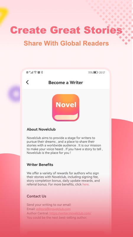 बिना कहानियों की दुनिया बिना रंगों की दुनिया है। चाहे आप एक अनुभवी लेखक हों या सिर्फ एक नौसिखिया, नोवेलक्लब हमारे पे-टू-रीड प्रोजेक्ट में शामिल होने के लिए आपका स्वागत करता है। यहां आपको अपने विचार साझा करने और दुनिया भर के पाठकों को अपनी कहानियों से परिचित कराने का मौका मिलता है।