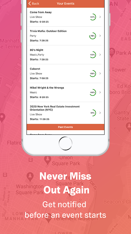 मशीन लर्निंग द्वारा संचालित हमारी व्यक्तिगत अनुशंसा प्रणाली का उपयोग करके कभी भी सही घटना को याद न करें। हमारे पास हजारों अपडेट की गई दैनिक घटनाओं की एक क्यूरेट सूची है जो सीधे आपके डिवाइस को प्रदान की जाती हैं।