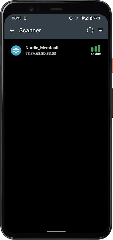nRF मेमफॉल्ट एक गेटवे ऐप है जो कनेक्टेड ब्लूटूथ लो एनर्जी एक्सेसरीज़ से मेमफॉल्ट डायग्नोस्टिक्स डेटा को मेमफॉल्ट क्लाउड पर भेजता है।