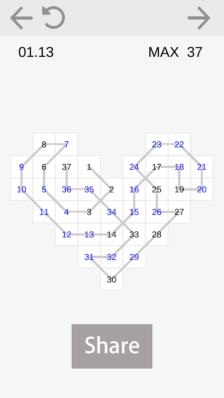 The goal of the game is to fill the grids with adjacent numbers to make an consecutive number knot.