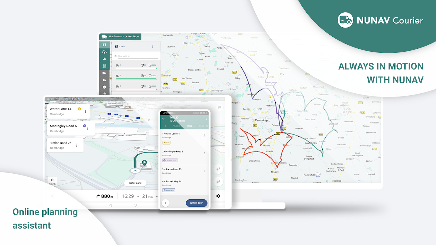 चाहे आप एक स्वतंत्र कूरियर हों, स्थानीय डिलीवरी कंपनी या बड़े लॉजिस्टिक्स नेटवर्क के लिए काम कर रहे हों - NUNAV कूरियर आपके मार्गों को अनुकूलित करता है और आपकी कमाई बढ़ाता है।