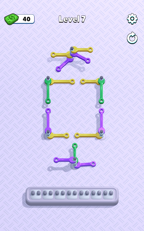 जटिलता की पहेलियाँ: हर स्तर पर बढ़ती जटिलता के साथ एक नई पहेली पेश की जाती है। पेंच सभी आकारों में आते हैं, विभिन्न धागे के पैटर्न के साथ जो रचनात्मकता और दूरदर्शिता की मांग करते हैं। सीधे-सादे कार्यों से लेकर दिमाग चकरा देने वाली पहेलियों तक, प्रत्येक स्तर एक ताज़ा और प्रेरक चुनौती की गारंटी देता है।