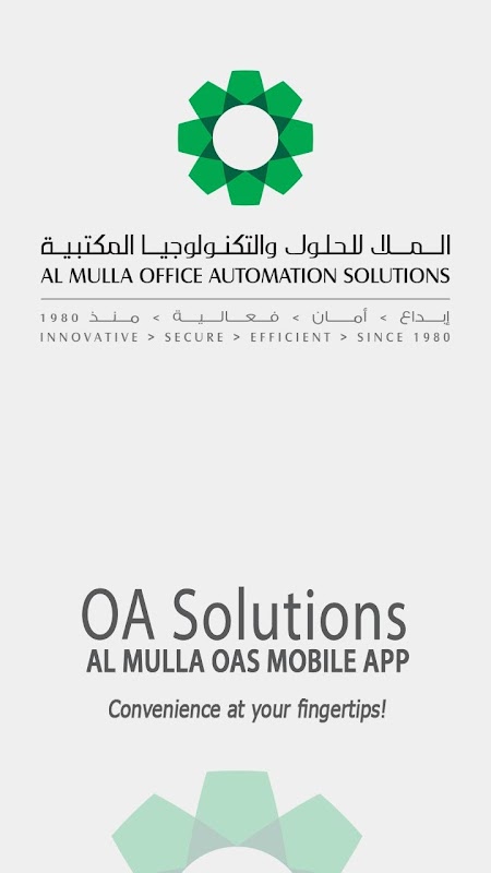 यह मोबाइल एप्लिकेशन अल मुल्ला ऑफिस ऑटोमेशन सॉल्यूशंस के केवल मौजूदा ग्राहकों के उपयोग के लिए है।