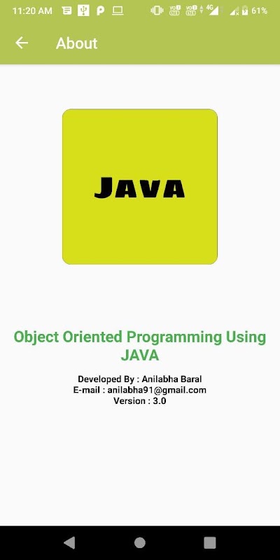 इस एप्लिकेशन में, आप जावा भाषा का उपयोग करके ऑब्जेक्ट-ओरिएंटेड प्रोग्रामिंग सीखेंगे।