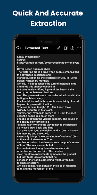 एक टैप से छवियों, फ़ोटो, पीडीएफ़, कैमरे से सटीक रूप से टेक्स्ट निकालें।