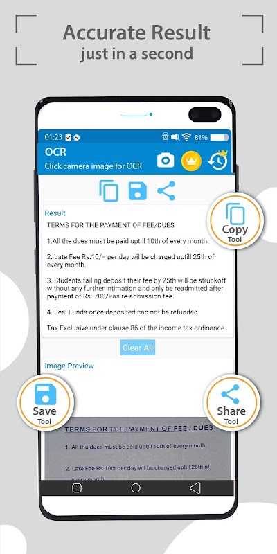 आप ocr स्कैनर ऐप की मदद से अपनी छवि को टेक्स्ट फॉर्मेट में बदल सकते हैं। आपके स्मार्टफोन सर्च इंजन पर अखबार / पत्रिकाओं या बिजनेस कार्ड के विवरण से मेल या लिंक लिखने में इतना समय लगता है। आप बार-बार वर्तनी की जांच करेंगे, इसलिए आपके लिए ऐसा करना बहुत मुश्किल है। इसलिए ocr टेक्स्ट स्कैनर ऐप आपकी समस्या को एक सेकंड के भीतर हल करने के लिए है। बस एप्लिकेशन खोलें और अपनी इच्छा पाठ या छवि को स्कैन करें। यदि आप इंटरनेट से बाहर हैं और आपको किसी भी दस्तावेज़ को तत्काल स्कैन करना है, तो चिंता न करें कि आप ocr टेक्स्ट स्कैनर का ऑफ़लाइन उपयोग भी कर सकते हैं।