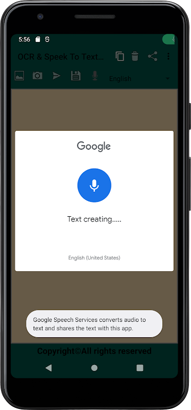 1. टेक्स्ट डिक्टेट करने के लिए ऐप का उपयोग करना आसान है जिसे एसएमएस या ईमेल के रूप में भेजा जा सकता है या किसी अन्य ऐप में कॉपी और पेस्ट किया जा सकता है। भाषण को पाठ में बदलने के लिए ऐप Android के अंतर्निहित वाक् पहचानकर्ता का उपयोग करता है। ऐप आपके अंतर्निहित टीटीएस इंजन का उपयोग करके टेक्स्ट बोलने में भी सक्षम है।
