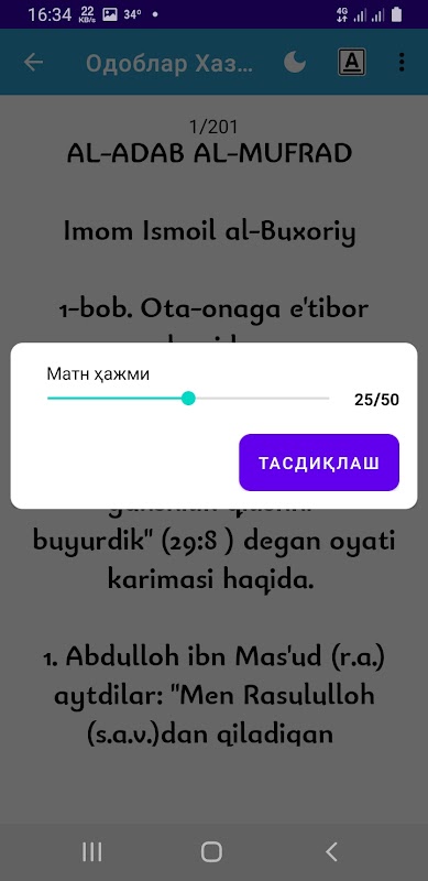 रसूलुलोह (s.a.v.) हम्मासिगा जावोब बेरवेरार्डिलर"।