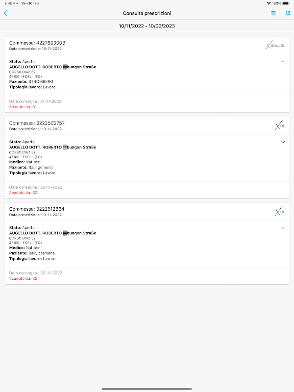 प्रसंस्करण के अंत में, उत्पादित प्रमाणपत्र ग्राहक को उपलब्ध कराए जाएंगे, जो उन्हें एपीपी या संबंधित ओडोन्टोसॉफ्ट पोर्टल के माध्यम से आसानी से डाउनलोड कर सकते हैं। सभी ऑर्डर ग्राहक, डॉक्टर, अवधि और प्रगति के अनुसार फ़िल्टर किए जा सकते हैं।