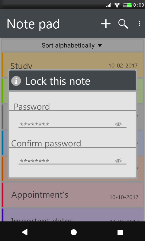 "ऑफिस नोटपैड - फास्ट ऑर्गनाइज्ड स्टिकी क्लास नोट्स" को न केवल अपने विचारों को ऑननोट्स रिकॉर्ड करना बल्कि चित्र मेमो विजेट के रूप में स्केच को भी रिकॉर्ड करने की आवश्यकता है, और इसके बाद कई नोटपैड नोट्स में कई टेक्स्ट लॉक सुविधा होती है आपके लिए पैड नोट एंड्रॉइड के लिए एंड्रॉइड के लिए इस रंगीन नोट्स सुविधा के साथ, सरल नोटपैड आप साधारण नोट्स जल्दी और आसानी से स्टेच, ड्रॉइंग के रूप में ऑफिस नोट्स बना सकते हैं, या पासवर्ड के साथ नोट लिखे नोटपैड के नोटपैड में बना सकते हैं। नोटपैड पाठ संपादक विभिन्न रंगों में चिपचिपा नोट्स नोट्स बनाने में आपकी सहायता करेंगे, जो नोट नोट खाली करने के नोट नोट खाली समय में अधिक सुंदर हैं। ध्यान दें कि नोटपैड, किसी भी समय तेज, आसान, उल्लेखनीय सुंदरता और नोट ऐप सुलभ हो। ऑफिस नोटपैड आपके एंड्रॉइड डिवाइस पर एक नया, आरामदायक और नोटपैड सरल अधिकार है। कार्यालय नोटपैड हमेशा आपके हाथ पर ध्यान देने योग्य नहीं है, किताबें सरल हैं, आप इसे भी लॉक, नोटपैड विगेट्स विजेट नोट्स को सहेज नहीं सकते हैं, यह आपके लिए सिर्फ ऐप नोट करना होगा, ड्राइंग नोट लिखने के लिए नोट करना है कि आप ऐप को क्या लेना चाहते हैं या क्या आप ऐसा करते हैं कि अनुसूचियां सरल करना भूलना नहीं चाहतीं नि: शुल्क नोटपैड किसी भी रंग को आप नोट लिखना चाहते हैं, आपके पास दोस्तों या रिश्तेदारों नोटपैड मुफ्त के साथ नोट साझा करने के लिए एक अच्छा नोट्स मौका है विजेट सबसे अच्छा नोट पैड आपको नोट लॉक करना बहुत सारे लेख लिखता है और नोट्स सरल होता है, जो आपको अपने नये नोटबुक की तुलना में ज़रूरत नहीं है, वह इसे आसानी से मेमो विजेट में मिल जाएगा। नोटपैड छात्रों के लिए पालना शीट स्मार्ट नोटबुक लिखे में ठीक है