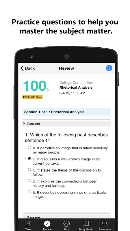 Using this app can significantly help you prepare and improve your mastery of CLEP College Composition and College Composition Modular material and with a passing mark on the actual exam, can help you earn college credit to most colleges and universities, reducing the overall cost and time of earning a degree!