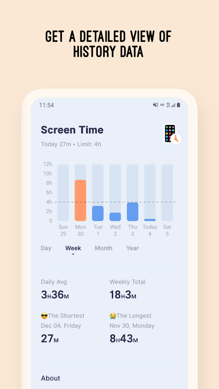 • अपने स्क्रीन समय लक्ष्य को सेट करें, दैनिक जानकारी प्राप्त करें।