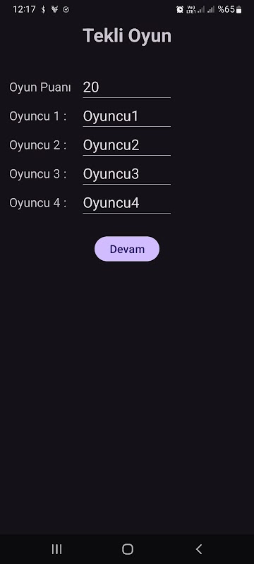 इस एप्लिकेशन के साथ, आप एक एकल (चार-व्यक्ति) गेम बना सकते हैं और सभी खिलाड़ियों को नाम दे सकते हैं।