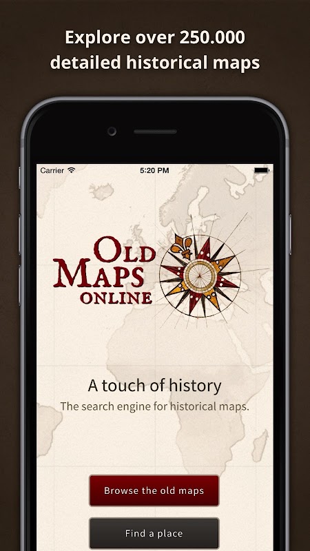 पुराने नक्शे से सारी दुनिया में 20 वीं सदी के लिए 15 से 250,000 से अधिक उच्च संकल्प ऐतिहासिक प्राचीन नक्शे से पता चलता है। पुराने नक्शे पर अपने खुद के जीपीएस स्थिति को देखने के लिए एप्लिकेशन का उपयोग करें, या बस अपने सोफे से एक के बाद एक ब्राउज़ करें। तुम बस के वर्ष के रूप में / से पैमाने पर, शीर्षक या लेखक, के लिए फिल्टर सेट कर सकते हैं।