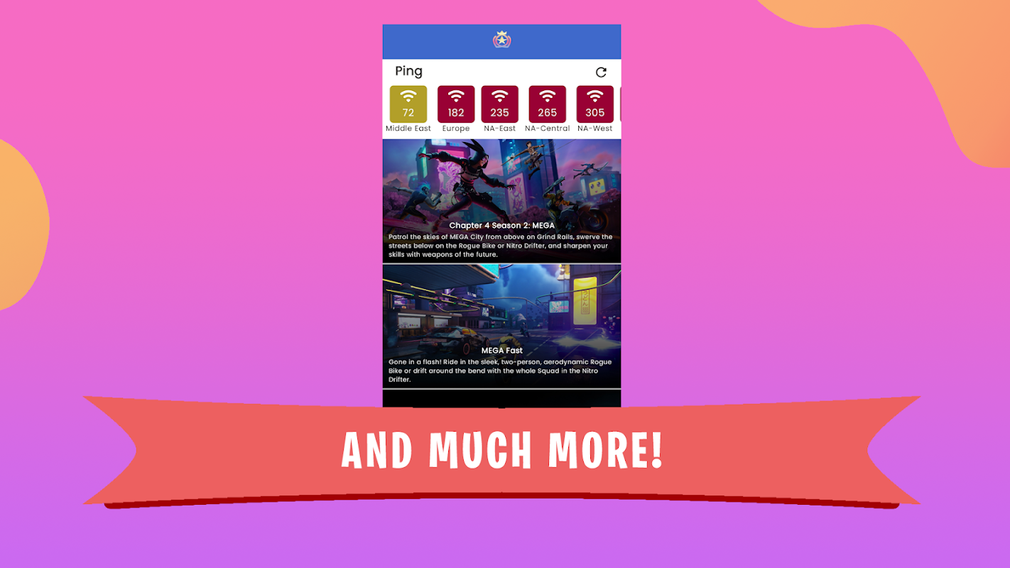 • फ़ोर्टनाइट पिंग टेस्ट: ओमेगा फ़ोर्टनाइट पिंग चेकर के रूप में भी कार्य करता है और आप एशिया और मध्य पूर्व सर्वर सहित सभी क्षेत्रों के लिए अपने पिंग का परीक्षण कर सकते हैं।