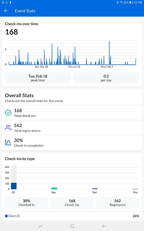 ऐप के इस संस्करण के साथ, आप अपने ईवेंट में इवेंट चेक-इन ऑनसाइट कर सकते हैं और उन्हें Cvent के इवेंट मैनेजमेंट समाधान के साथ मूल रूप से सिंक कर सकते हैं।