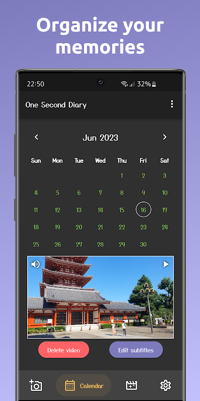 वन सेकंड डायरी, एक न्यूनतम और ओपन सोर्स वीडियो डायरी ऐप के साथ अपने जीवन का एक दृश्य जर्नल रखें। प्रतिदिन 1 से 10 सेकंड के वीडियो रिकॉर्ड करें और किसी भी समय अपनी सभी यादों का एक संकलन बनाएं।
