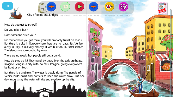 शुरुआती पाठकों के लिए एक दिन में एक कहानी लंबी कहानियों, अधिक शब्दावली, और अधिक जटिल व्याकरणिक संरचना के साथ शुरुआती श्रृंखला पर आधारित है। बच्चों के अंग्रेजी पढ़ने और समझने के कौशल के व्यापक विकास के लिए गतिविधियाँ प्रत्येक कहानी का अनुसरण करती हैं।